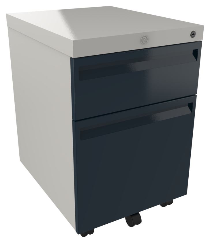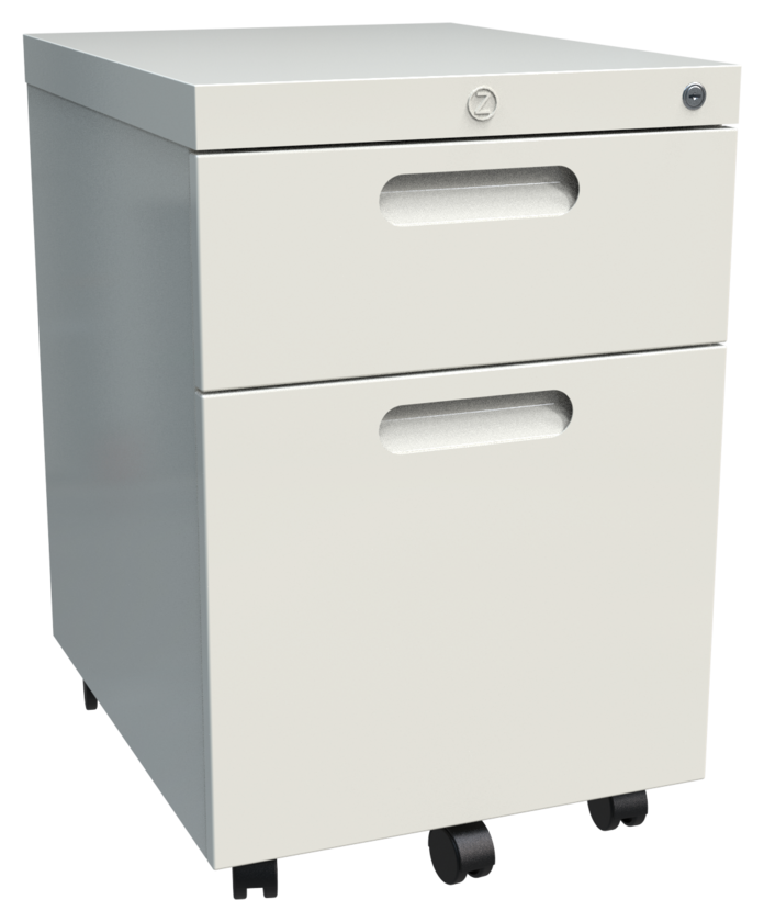 Archivero metálico vertical 1+1 cajón papelero y cajón de archivo tamaño carta, corredera de extensión móvil, rodajas, jaladera embutida, cerradura general y terminado en pintura electrostática.