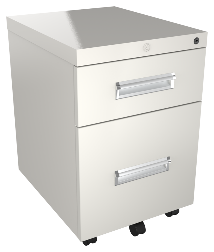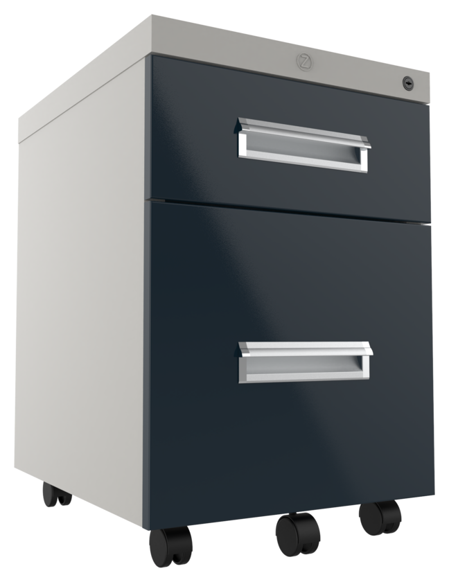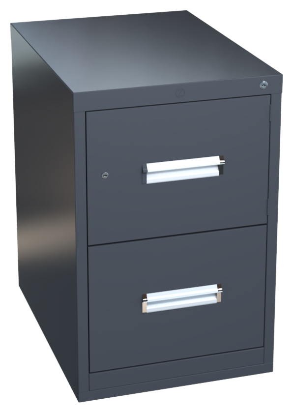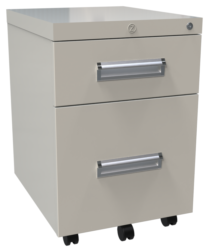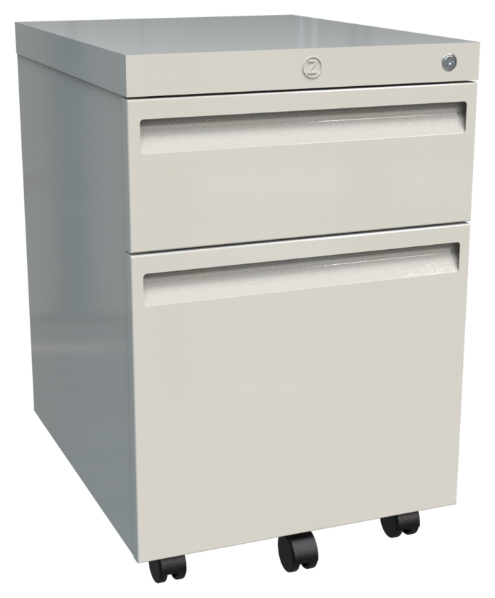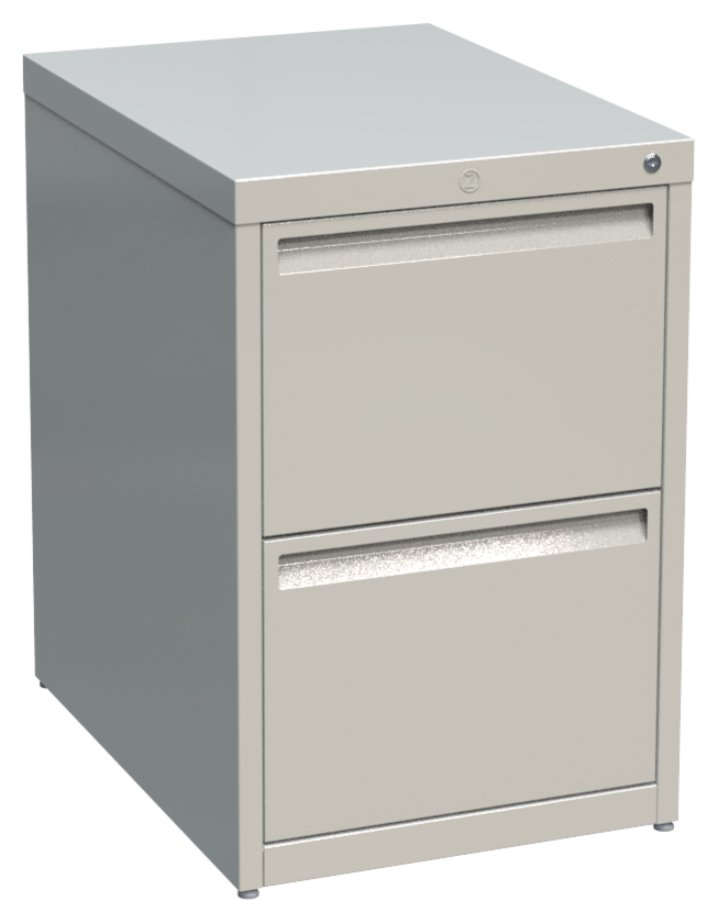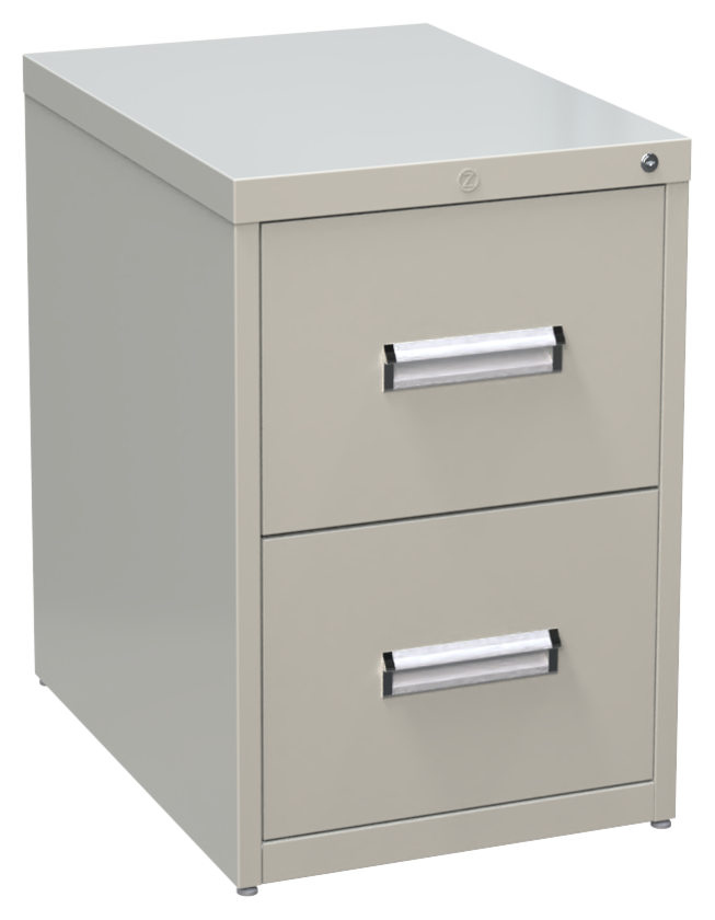 Archivero metálico vertical 1+1 cajón papelero y cajón de archivo tamaño carta, corredera de extensión móvil, rodajas, jaladera embutida de aluminio, cerradura general y terminado en pintura electrostática.