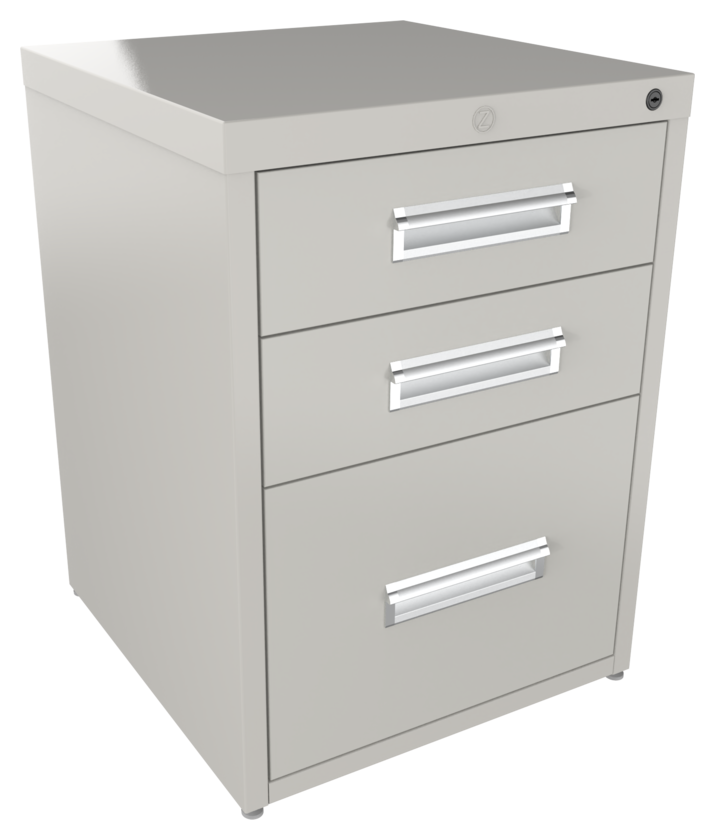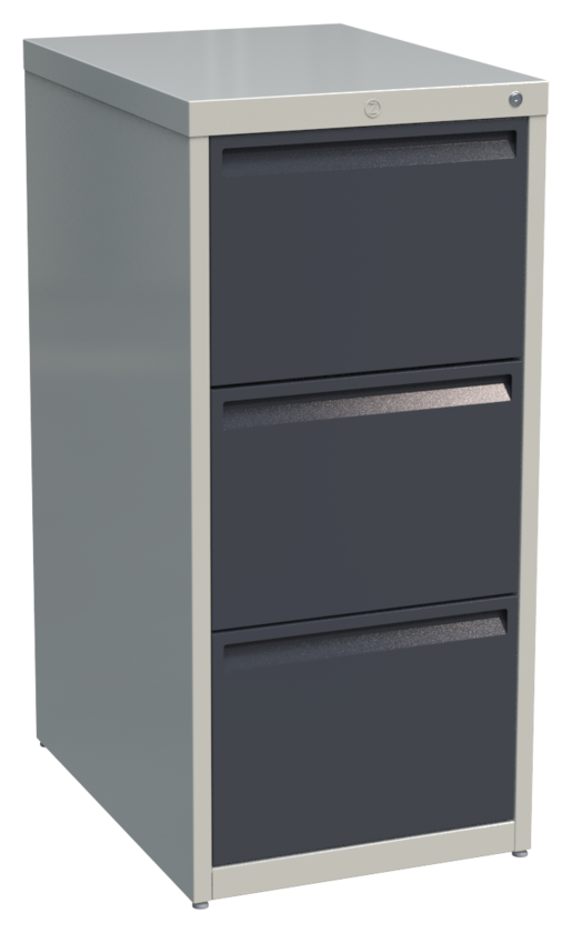 Archivero metálico vertical de 3 gavetas, 2 cajones papeleros y 1 cajón archivo tamaño oficio y carta, corredera de extensión móvil, nivelador de altura, jaladera embutida de aluminio, cerradura general y terminado en pintura electrostatica.