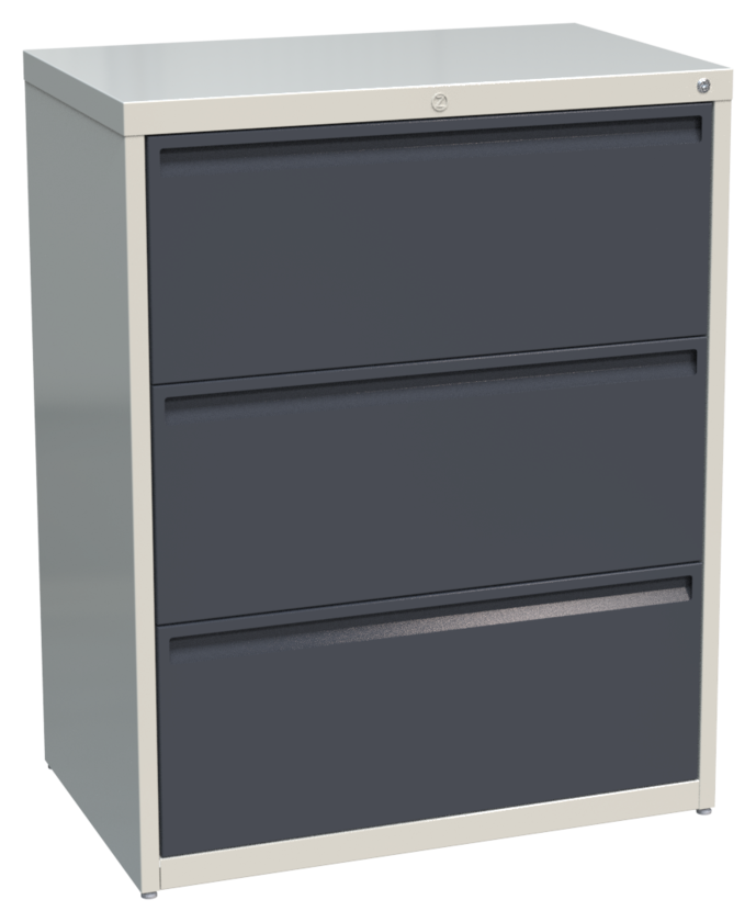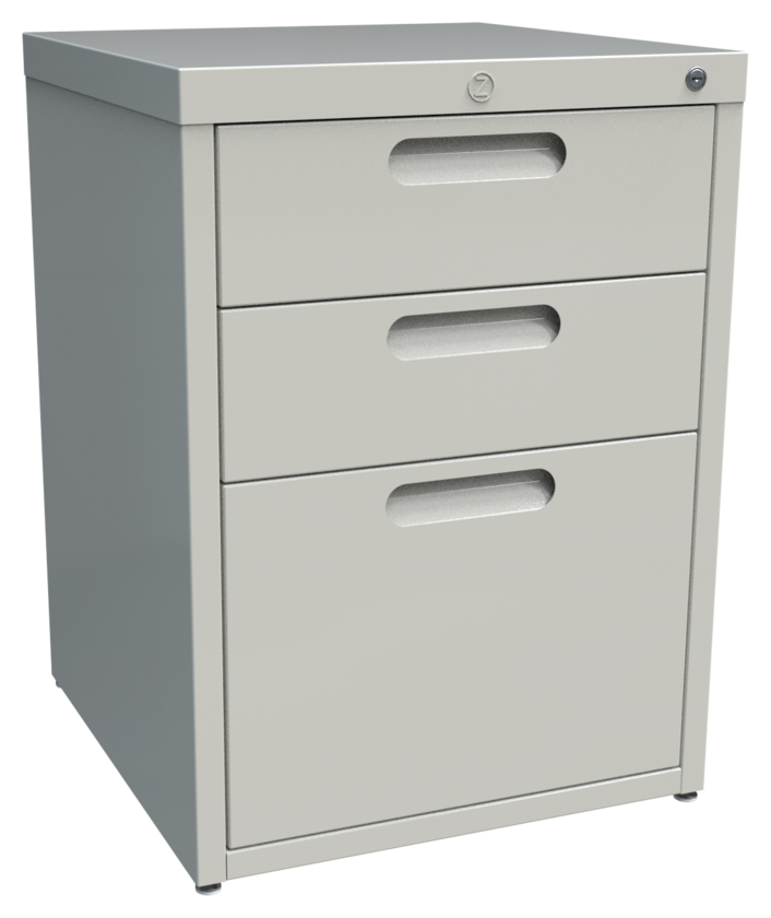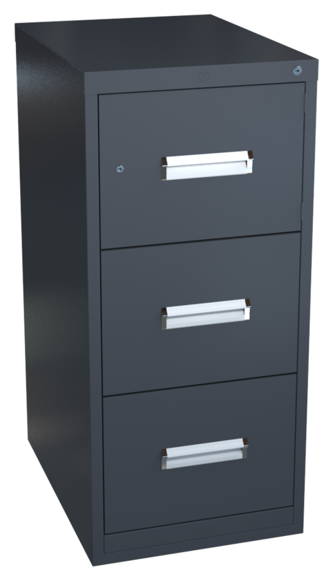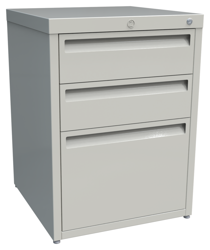 Archivero metálico vertical de 3 gavetas, 2 cajones papeleros y 1 cajón archivo tamaño oficio y carta, corredera de extensión móvil, nivelador de altura, jaladera embutida, cerradura general y terminado en pintura electrostática.
