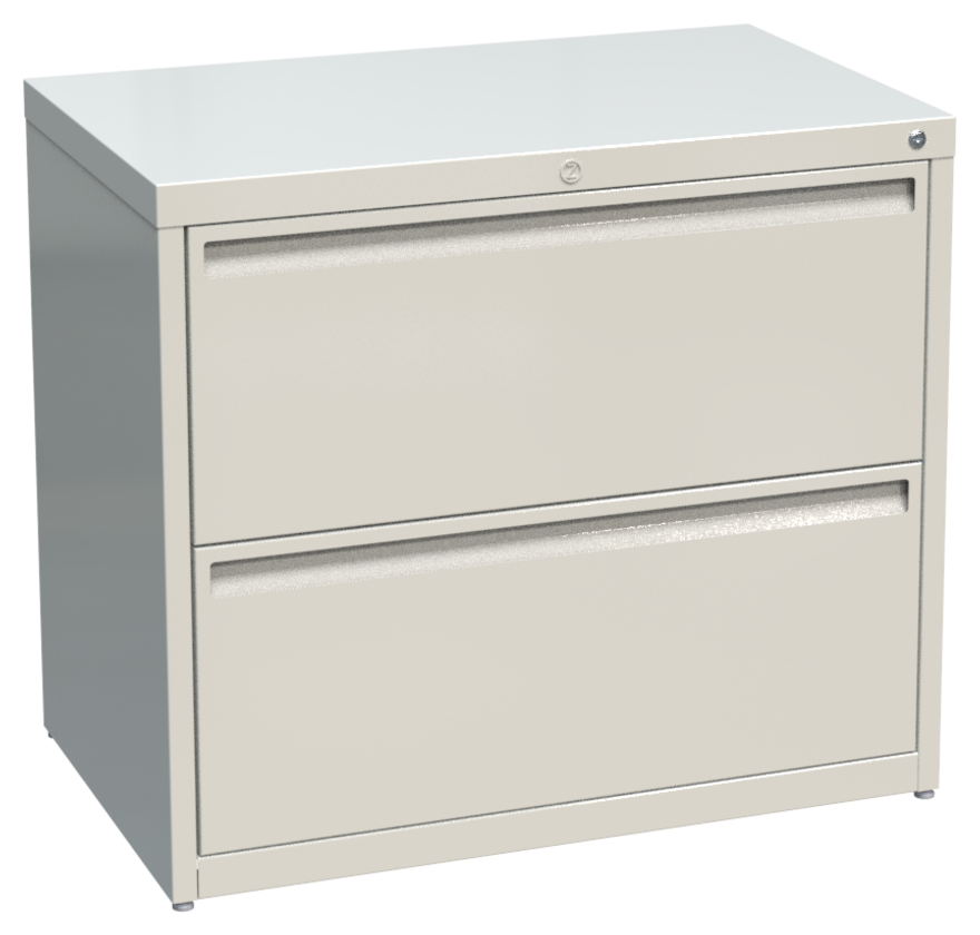 Archivero metálico horizontal, gavetas tamaño oficio y carta, corredera de extensión móvil, nivelador de altura, jaladera embutida, cerradura general y terminado en pintura electrostática.