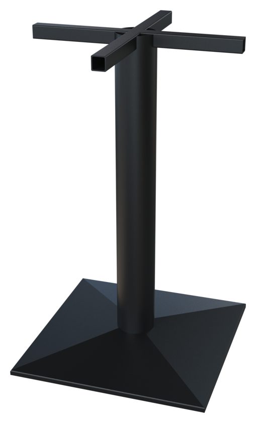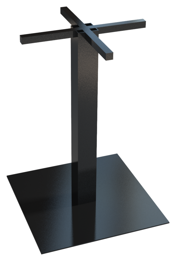 Estructura metálica con base plana cuadrada, soporte vertical de 3″ cal. 18.