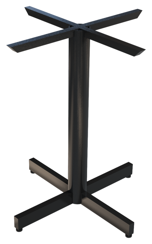 Estructura metálica con base tipo cruceta en perfil 2″x1″, soporte vertical de 3″ cal. 18. nivelador de altura ajustable.