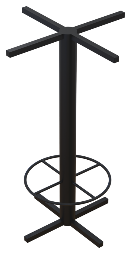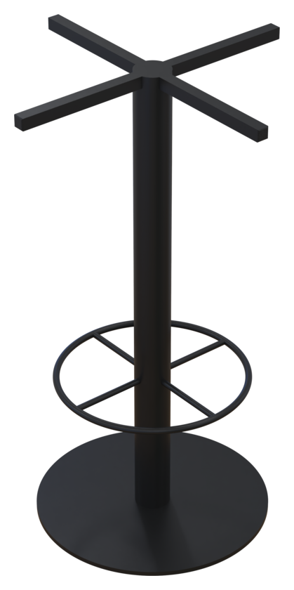 Estructura metálica con base de fierro vaciado redonda, soporte vertical de 3″ cal. 18. Con descansa pies.