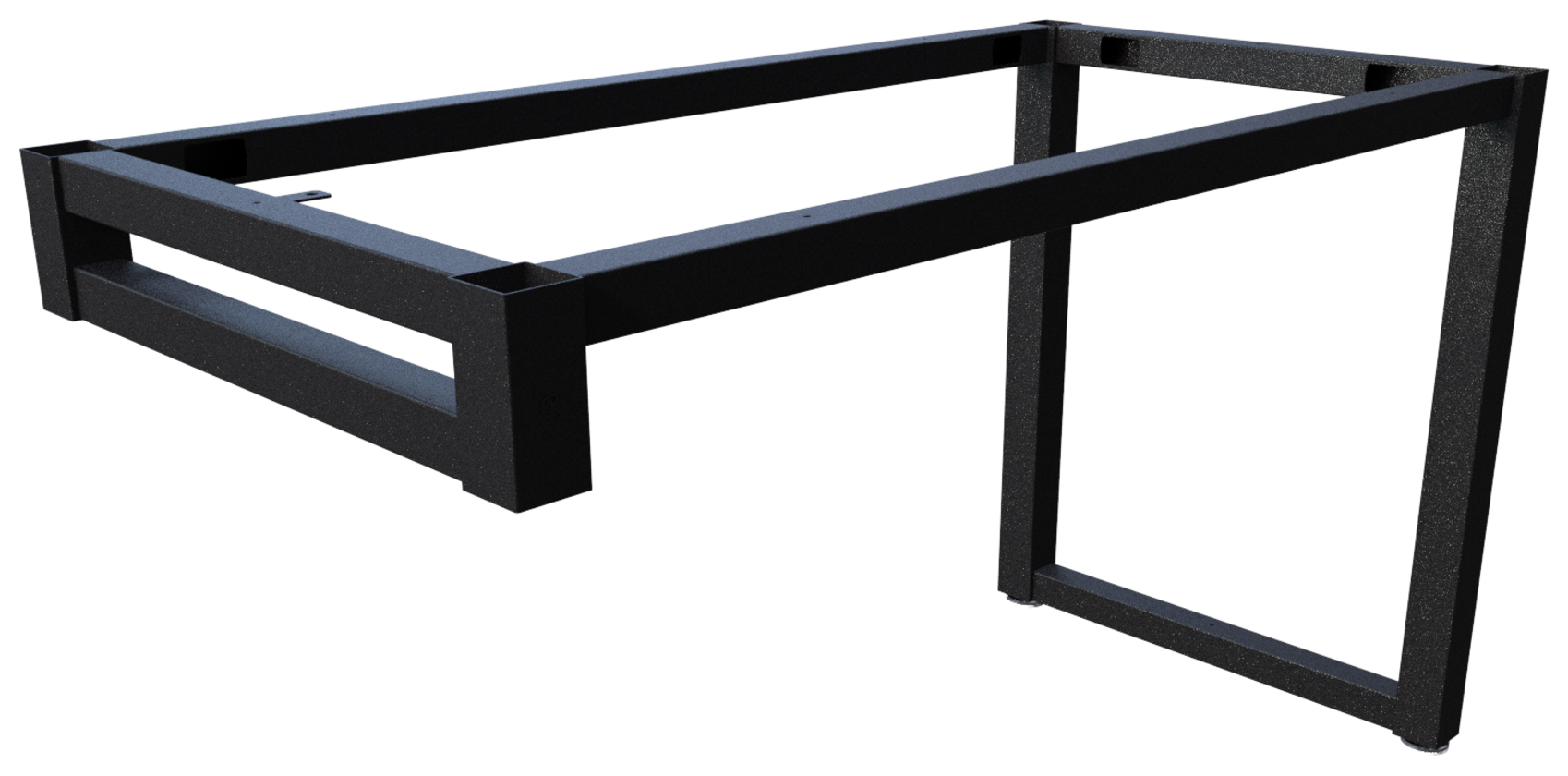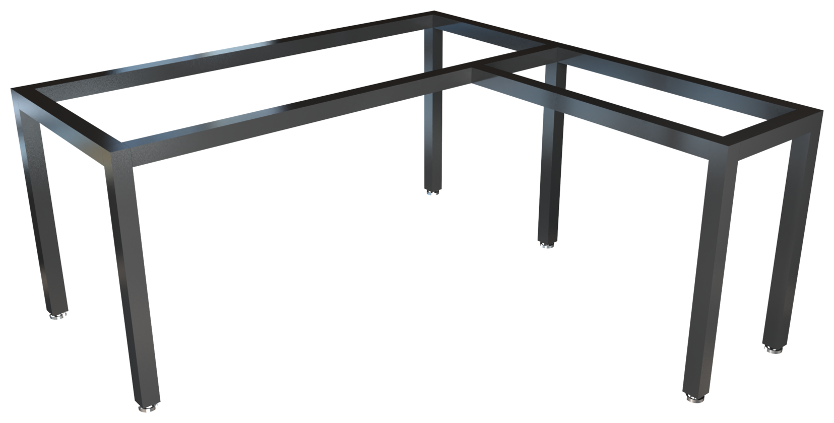 Estructura para mesa de trabajo suspendida (flotante) patas tipo “U” invertida, pata de 2 1/2×1 1/4″ y largueros 2×1″ tubular cuadrado cal. 18. en pintura horneada, nivelador de altura ajustable cromado por medio de inserto remachado.